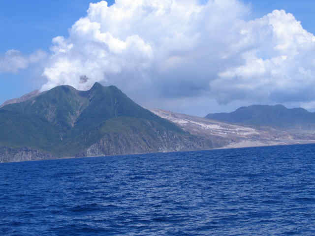 Our trip to the Caribbean started off from Guadeloupe to Isle de Saintes, with a sail by of the volcano on Montserat, and on to Antigua.  This first picture is an arial view of the western slope of Monserat's once capital city that was wiped out in the 1999 eruption that killed 17 people and the lava flow was clocked at 80 miles an hour (per the National Geographic Channel).  You will see several other shots in the slideshow of the islands south and eastern slopes as well as the steam coming up from the volcano.