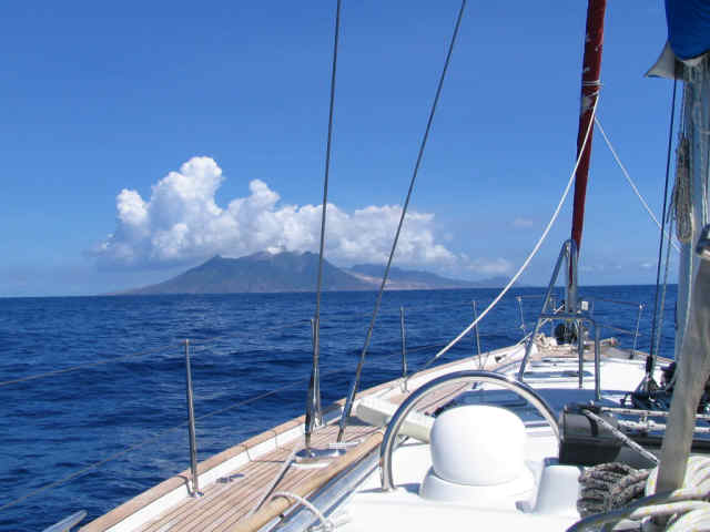 Our trip to the Caribbean started off from Guadeloupe to Isle de Saintes, with a sail by of the volcano on Montserat, and on to Antigua. This first picture is an arial view of the western slope of Monserat's once capital city that was wiped out in the 1999 eruption that killed 17 people and the lava flow was clocked at 80 miles an hour (per the National Geographic Channel). You will see several other shots in the slideshow of the islands south and eastern slopes as well as the steam coming up from the volcano.
